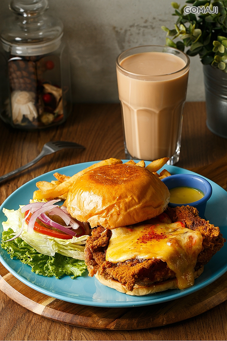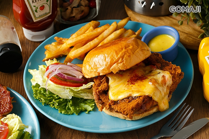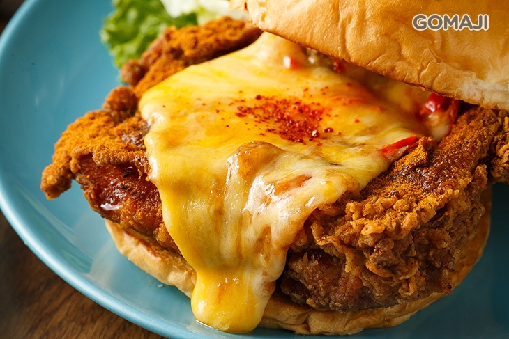 將現烤出爐的美式漢堡,鋪上重量級炸雞腿肉,放上起司,撒點辣粉,點綴提味,大口品嚐,鮮美肉汁瞬間在嘴裡爆發,卡滋卡滋酥脆不油膩,與起司相襯,完美無比,超人氣料理,不推不行!