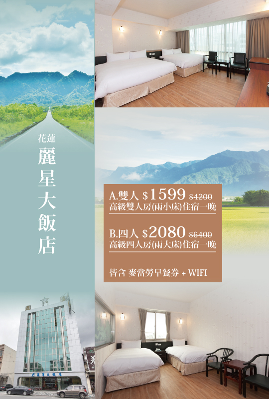 【花蓮-麗星大飯店】感謝麻吉們熱烈搶購,已全數賣光光。