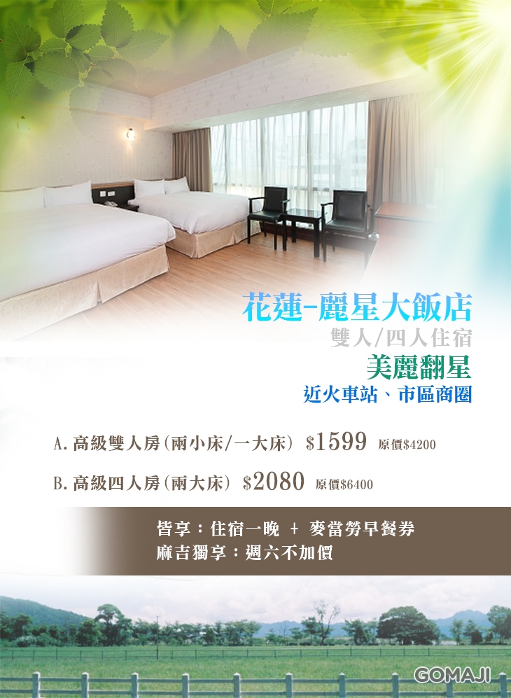 【花蓮-麗星大飯店】感謝麻吉們熱烈搶購,已全數賣光光。