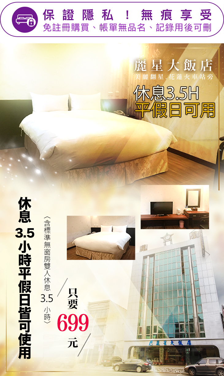 【花蓮-麗星大飯店】感謝麻吉們熱烈搶購,已全數賣光光。