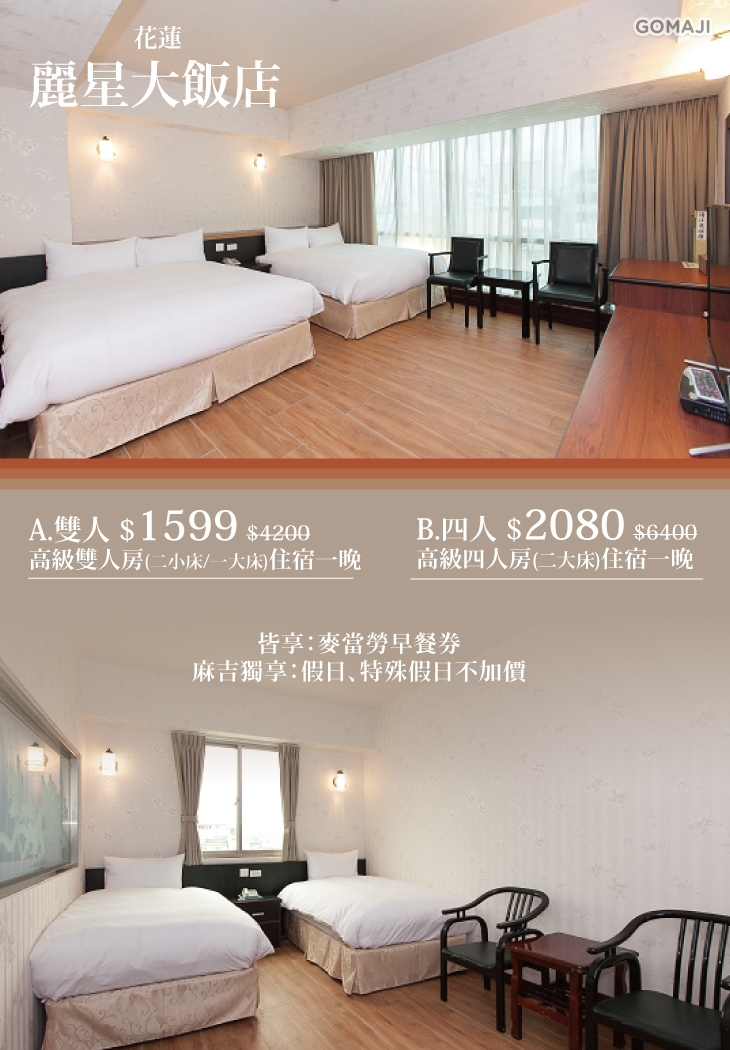 【花蓮-麗星大飯店】感謝麻吉們熱烈搶購,已全數賣光光。