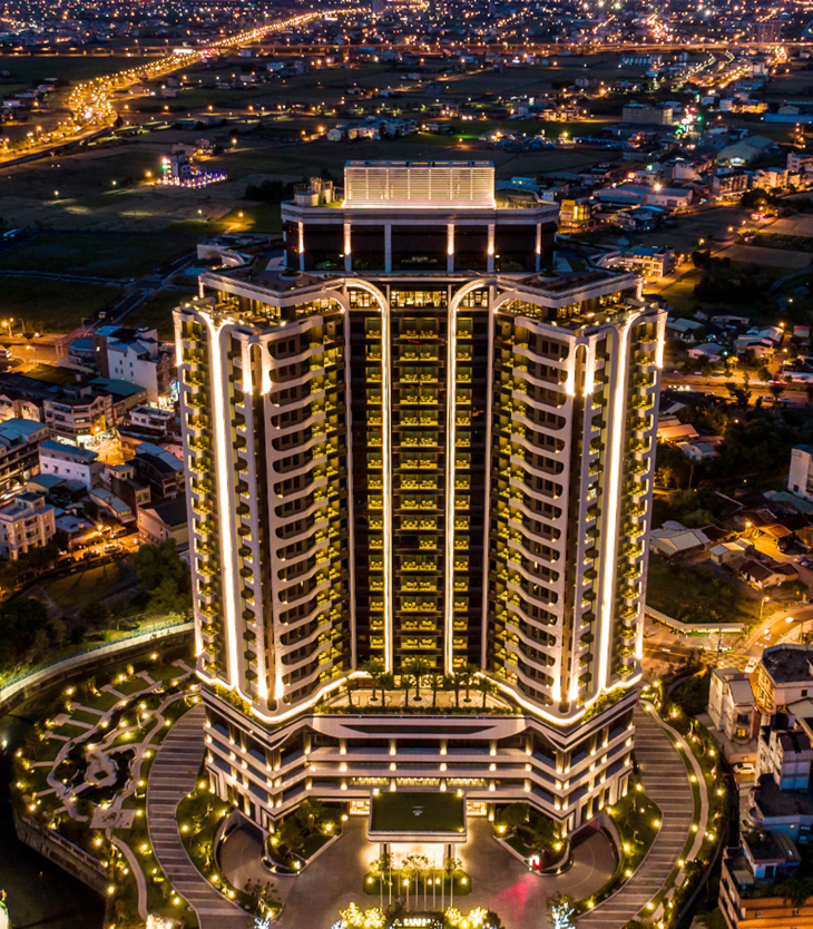 座落於羅東火車站、蘭陽平原精華帶的建築地標誕生,現代簡約風格,夜間成為光芒璀璨的線型發光體,雙Y軸線設計,以「現代禪風」設計風格、打造成為宜蘭最頂級國際渡假酒店,匯集風華絕代的主題餐廳,提供各式頂級料理與宜蘭唯一的高空酒吧於一身。坐擁連綿雪山,遠眺蔚藍大海,是宜蘭度假的夢幻首選。