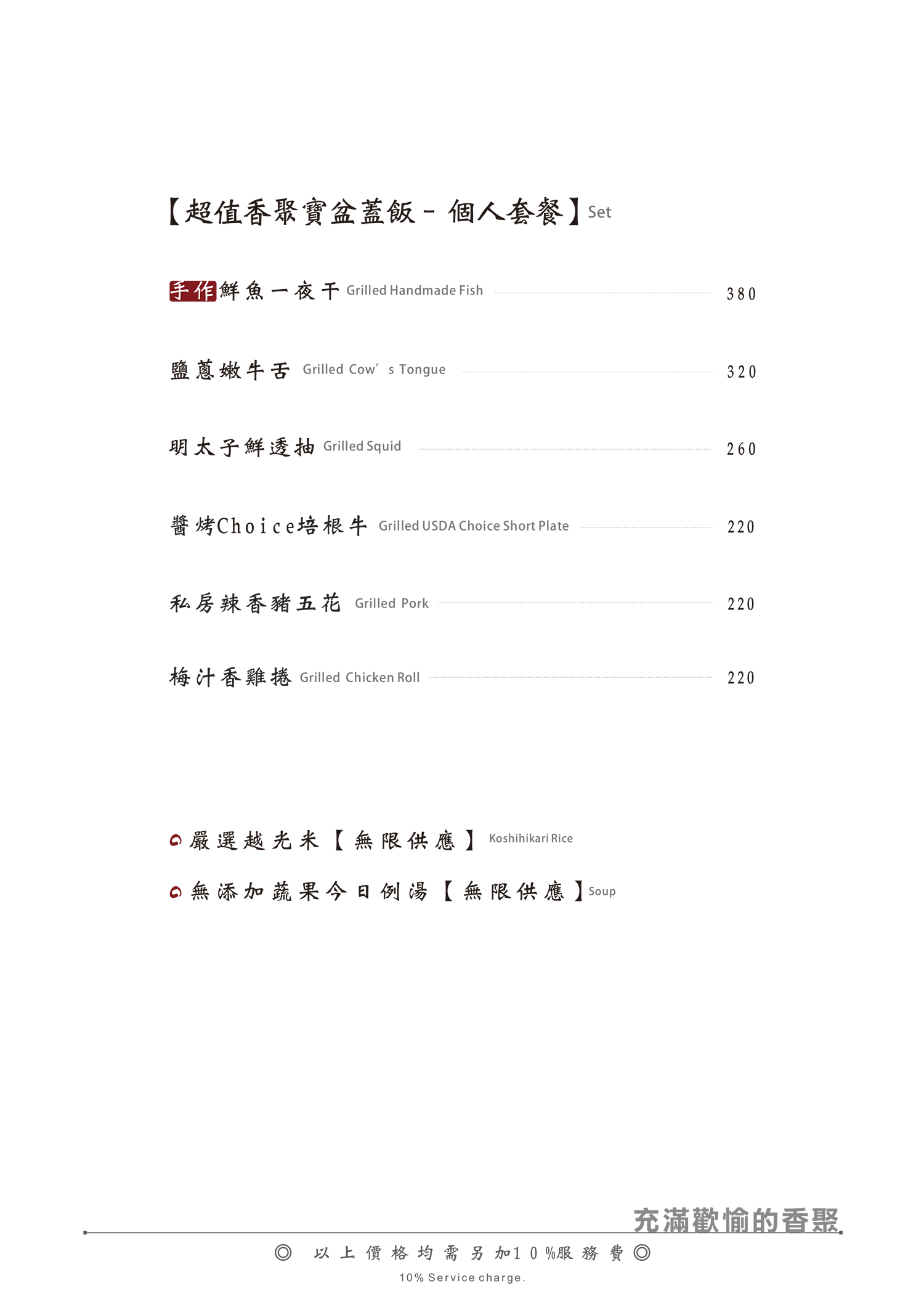因為這分香氣,使得大夥兒有默契的來到此地窩在一塊;因為這分情意,餐桌前的料理比以往更多了種新的意義;因為這一切的難能可貴,所以值得獻給最不一樣的您。從食材的揀選、紮實的精湛廚藝、品管嚴格把關等等,每一個步驟都是如此費心審視,絲毫不能拖泥帶水,也正因如此,料理更顯純粹、巔峰,無論是松露無骨牛飯糰、青醬透抽、鮮烤澳洲國王蝦等,個個集結了創意和時下美味的元素,重塑出獨一無二的高檔料理,讓您嚐過永生難忘。