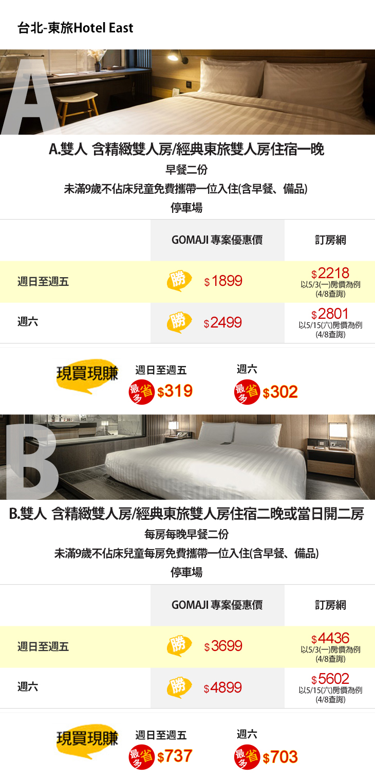 【台北-東旅Hotel East】感謝麻吉們熱烈搶購,已全數賣光光。