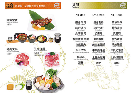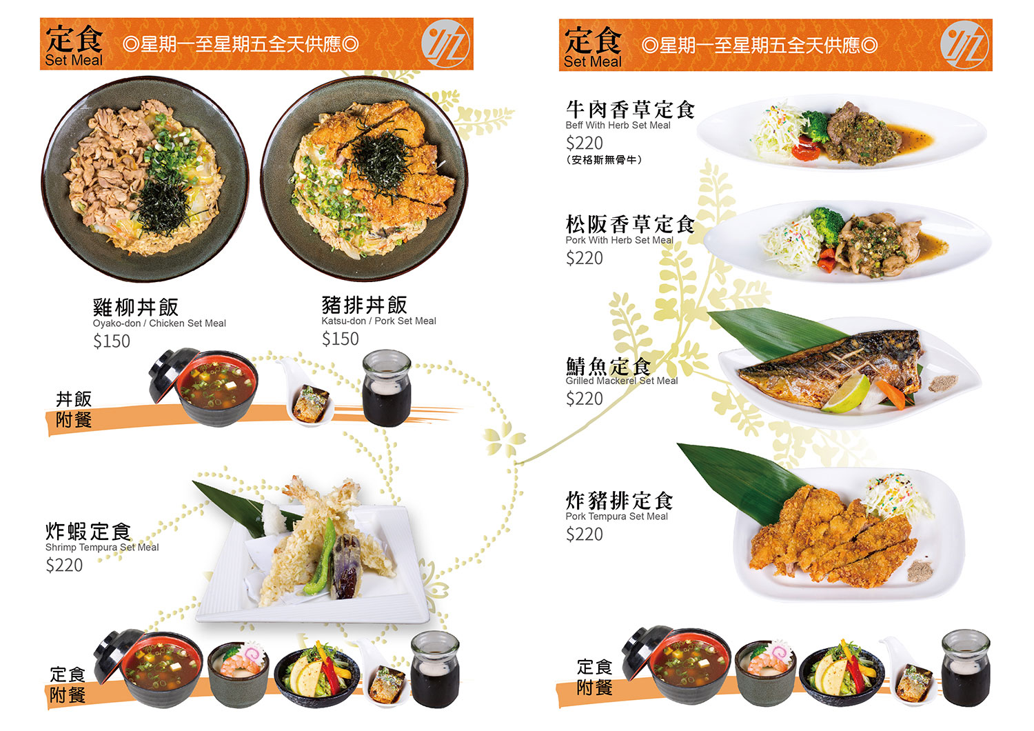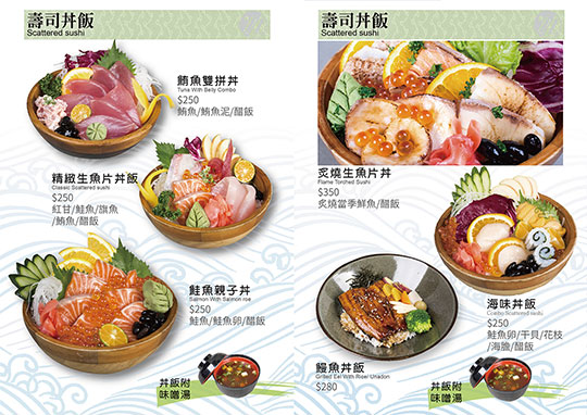 (酒水不適用) 特別推薦:火焰牛、宮保雞丁、麻辣水煮魚、岩見澤冷麵、綜合握壽司、炙燒生魚片丼、精緻生魚片丼、松阪香草定食、燜鴨兩吃