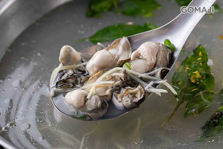 使用滿滿新鮮蚵仔經燉而成的鮮蚵湯,澄澈透亮的湯水,萃取了鮮蚵豐厚的甘甜,與碩大肥美、水潤渾圓的鮮蚵一同入口,鮮香味美中點綴著些許薑絲的辛香,迷人的湯頭底蘊富含深度,和鮮蚵鮮明的鮮甜形成巧妙的配搭,讓人愛不釋口!