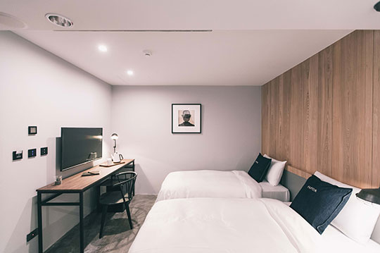 外觀以清水模作為最主要的建築表情,並採用細膩中帶點樸實的混和式loft風格搭配,不失精緻與質感!大廳則大面積使用了台灣碩果僅存的瓦窯廠-三和瓦窯所燒製的黑磚,經過窯燒碳化後的黑磚,不僅能吸收異味,其溫吞的色調更營造舒適氛圍!整個空間不僅融入西方藝術特質、深耕在地老高雄的工業印象、細微地呈現台灣珍貴的傳統工法,如此異文化結合碰撞出宛如新生的藝術旅宿環境,替您留下美好記憶與熱切的溫度。