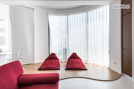 熱情溫暖的慵懶陽光,整體為紅色基調的布置,象徵著熱情與活力,希望住宿的旅客在經過一晚的休憩後,能夠感染這份熱情,擺脫疲乏的倦怠,對生活更有衝勁!