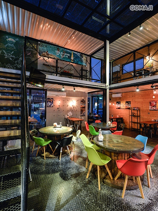 這是一間由貨櫃所組成的特色的餐廳,輕工業風的設計裝潢打造,寬敞又舒適的空間置身其中好自在,讓大夥兒品嚐美味料裡之餘還能增添娛樂享受,歡迎麻吉前來【喝郎燒烤bar】坐坐喔!
