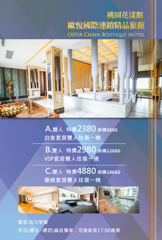 【歐悅連鎖精品旅館-桃園花漾館】感謝麻吉們熱烈搶購,已全數賣光光。
