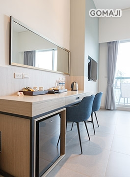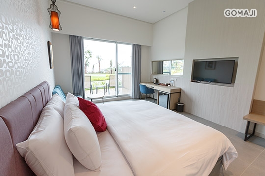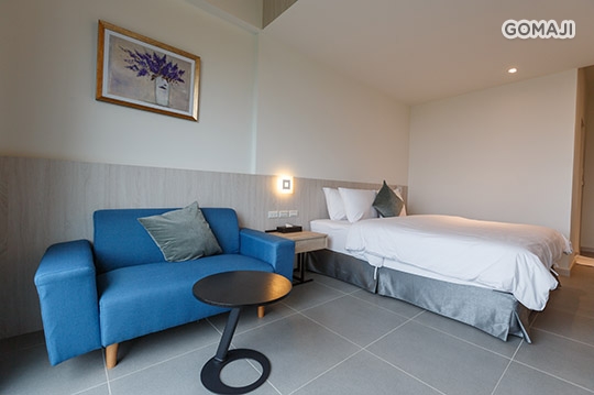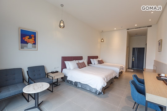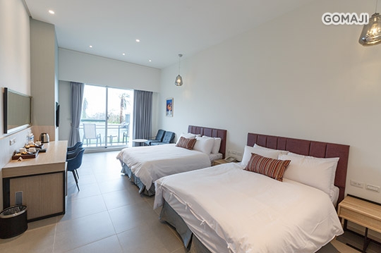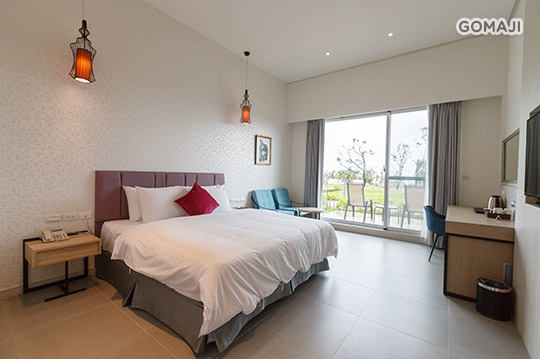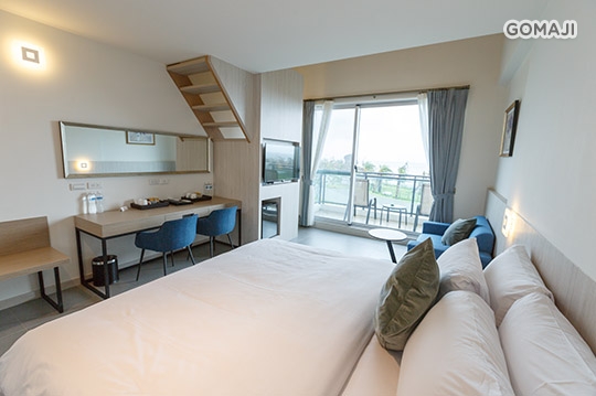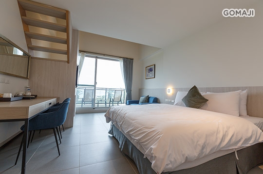 寬敞優雅的室內空間,打造溫馨放鬆的舒適套房,不僅有獨立衛浴設備,還有專屬陽台可遠眺船帆石沙灘美麗海景,與親愛的他好好享受最純粹的假期時光!