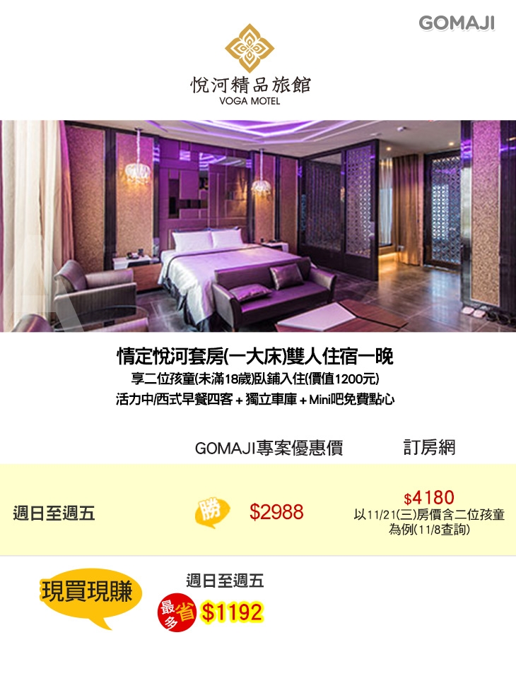 【台中-悅河精品旅館】感謝麻吉們熱烈搶購,已全數賣光光。