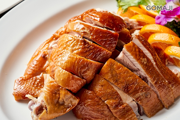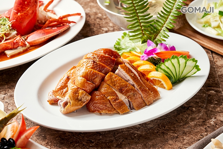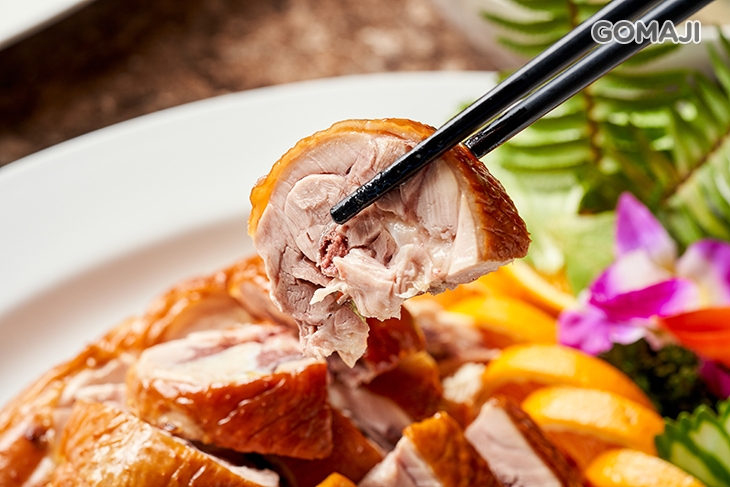 油潤有光澤的外皮,透著甘蔗雞獨有的鮮香氣,取塊品嚐,肉嫩味香,細細咀嚼,甜而鮮美,搭配精緻美麗的擺盤,讓雞肉也能搖身一變,成為餐桌上那閃閃發亮的耀眼巨星!