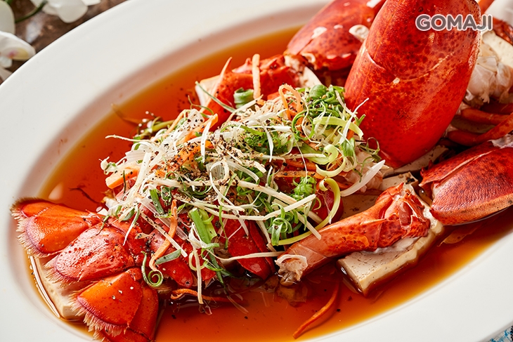 頂級波士頓龍蝦,以清蒸的料理方式呈現龍蝦美味,橘紅殼身,美艷動人,佐上一點脆綠青蔥,宛如聖誕節裡的一品花,紅中帶綠,迷人美麗!趁熱品嚐,龍蝦肉質肥美彈牙,細細咀嚼,不時散發濃濃鮮香,身為海鮮控的您,這道錯過可惜,必嚐無疑!