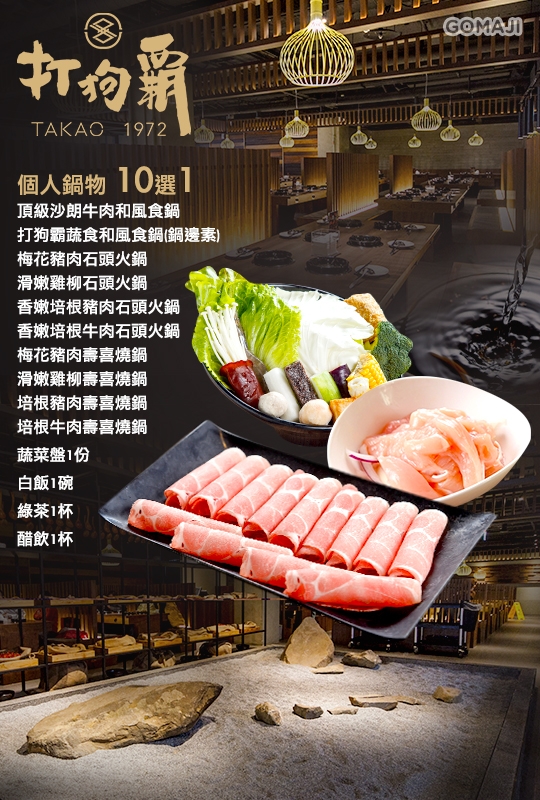 海霸王集團旗下品牌餐廳 ─ 打狗霸TAKAO1972,專營精美豐富的鍋物,耗資重本打造高端裝潢,設計質感一流,空間寬闊,一點也不覺得是在火鍋店裡用餐,同時也打破一般吃鍋全身沾滿油 煙味的刻板迷思,讓你可以優雅的和親朋好友入座享用精緻美食,即便非用餐時刻也經常是高朋滿座,生意極佳,不少外籍旅客如日、韓、港等更將之列為台灣的美食餐廳之一,顯見魅力超凡!