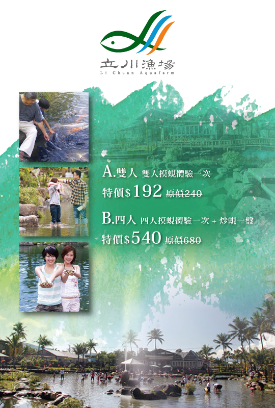 來到立川,一定要捲起褲管體驗一下什麼叫做『摸蜆兼洗褲』!長輩可以回味早年在農田水圳中的那份兒時記趣,小朋友可以玩水體驗另類的粒粒皆辛苦。養殖人家擁有兩個太陽與兩個月亮,頭上一顆,水面一顆,就是要下了體驗池才感受的到。天然湧泉讓水溫終年保持一定,夏日沁涼,冬日也不至於太冷,固定的整池讓裡面常保清潔,是個一年四季都可以嘗試的記憶!