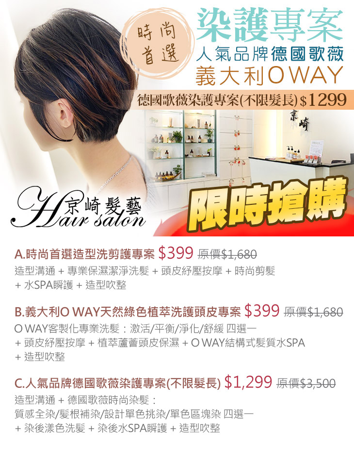 C.人氣品牌德國歌薇染護專案(不限髮長)