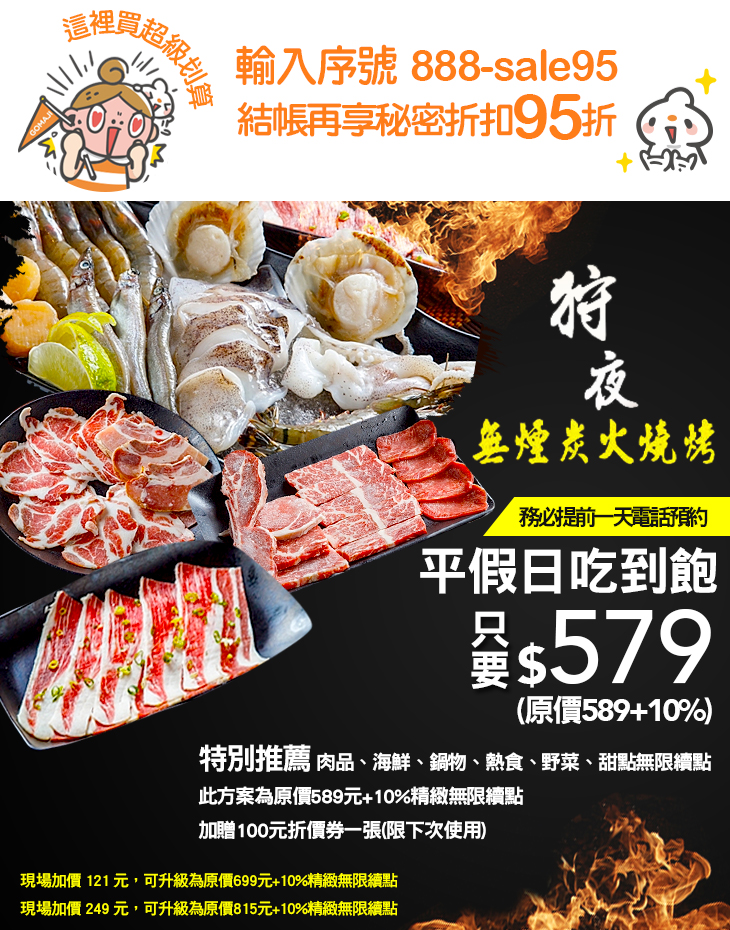 【桃園 狩夜無煙碳火燒烤】 火烤兩吃精緻單點吃到飽