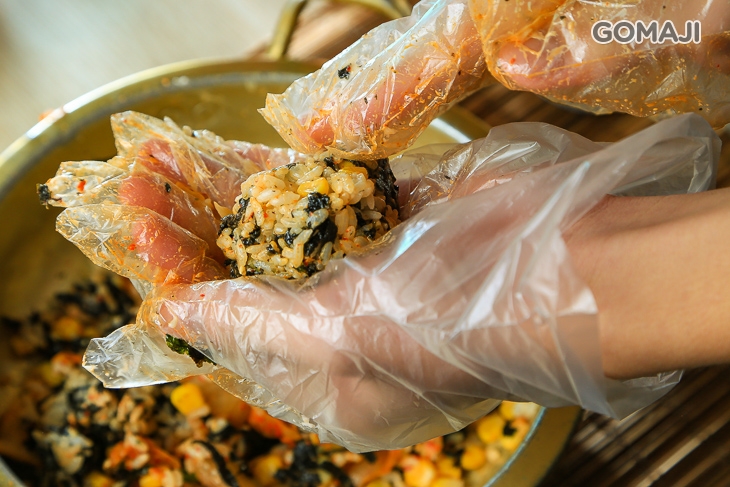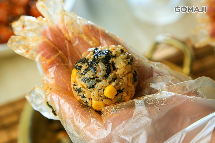 不必出國就能享受來自韓國的誘人滋味!師傅以嫻熟手藝細心捏製拳頭飯,圓潤飽滿的米飯中,結合玉米、海苔、蔥花,紅殷殷的泡菜更為拳頭飯添了一抹辣香,辣中帶脆、脆中帶酸,滿滿韓式精華全都在這道之中,令人讚不絕口!