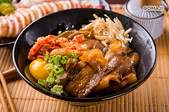 熱騰騰的豬五花燒肉丼飯一端上桌就引人垂涎,油亮的燒肉配上細緻蛋黃與翠綠蔥花等,蛋香、肉香、醬香完美融合,讓您魂牽夢縈的不敗美味。