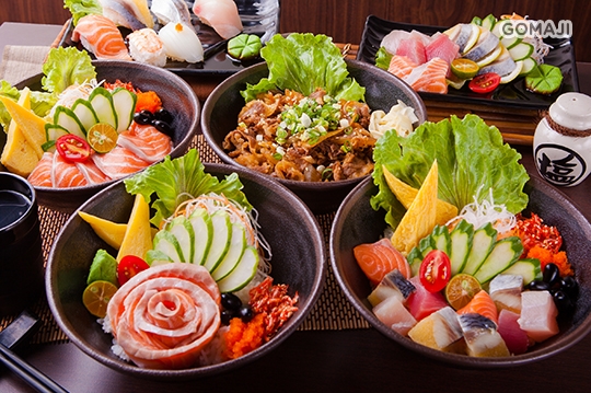 特別推薦:招牌盛壽司丼飯、鮭魚肚丼飯、照燒牛丼飯、綜合生魚片、綜合握壽司、鮭魚生丼飯