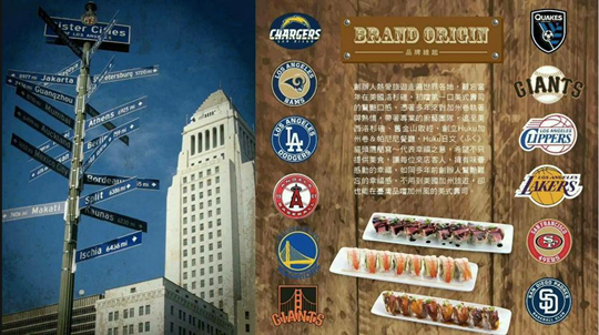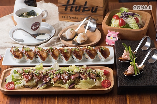 【Huku加州卷 美式壽司】為手舞足蹈休閒餐飲集團旗下的品牌之一,其創辦人就是憑藉著拼湊回憶的拼圖,全心投入一股熱情和執著,尋找當年在美國洛杉磯,那段初嚐美式壽司的驚艷時光。美式壽司目前相當受年輕人歡迎,有別於傳統壽司風采,豐沛食材增添主廚創意元素、佐以日式工法製作、再以豪邁美式吃法大口享用,藏不住的好滋味在舌根裡靜靜咀嚼,超有飽足感!