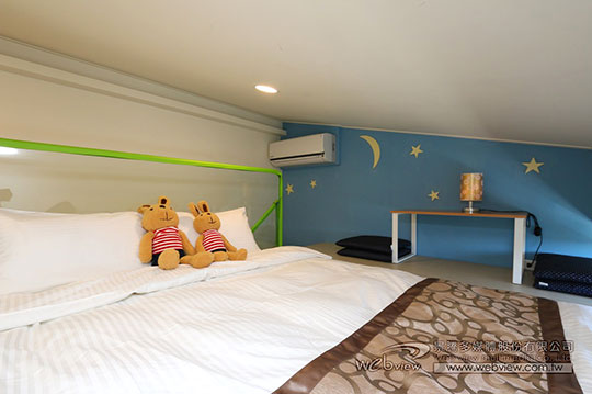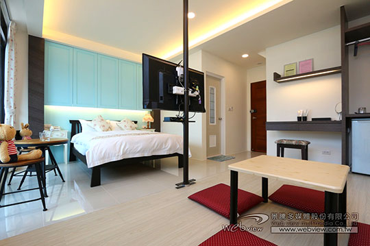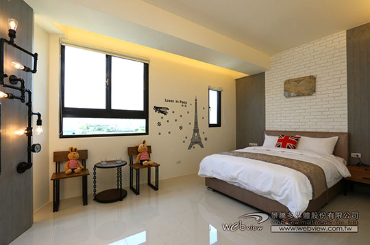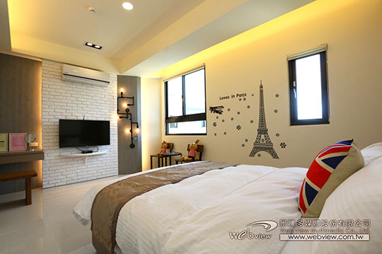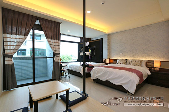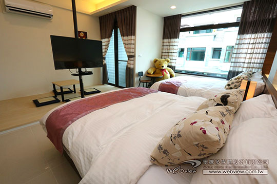 寬敞舒適的雙人房,簡單的空間隔局,搭配簡約的裝潢設計,置入頂級、舒適的寢具及完善、別具風格的家具設備,打造出飯店式歐風的住宿環境。