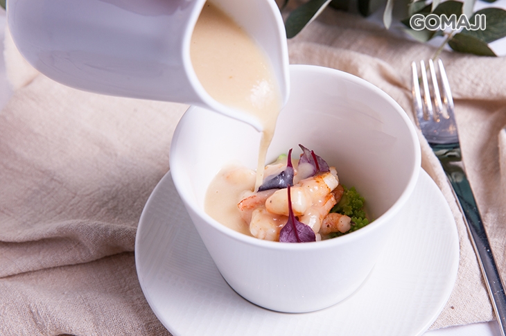 十字花蔬菜牛乳濃湯佐自然生態蝦