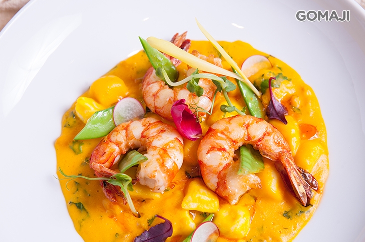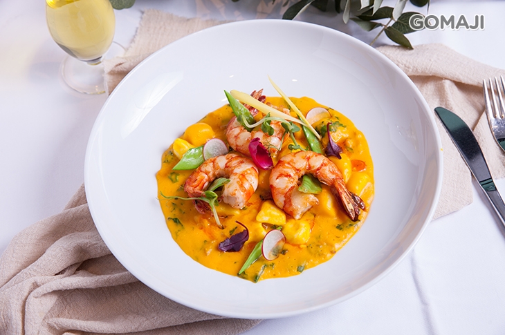 生態老虎蝦佐手工南瓜培根洋芋餃
