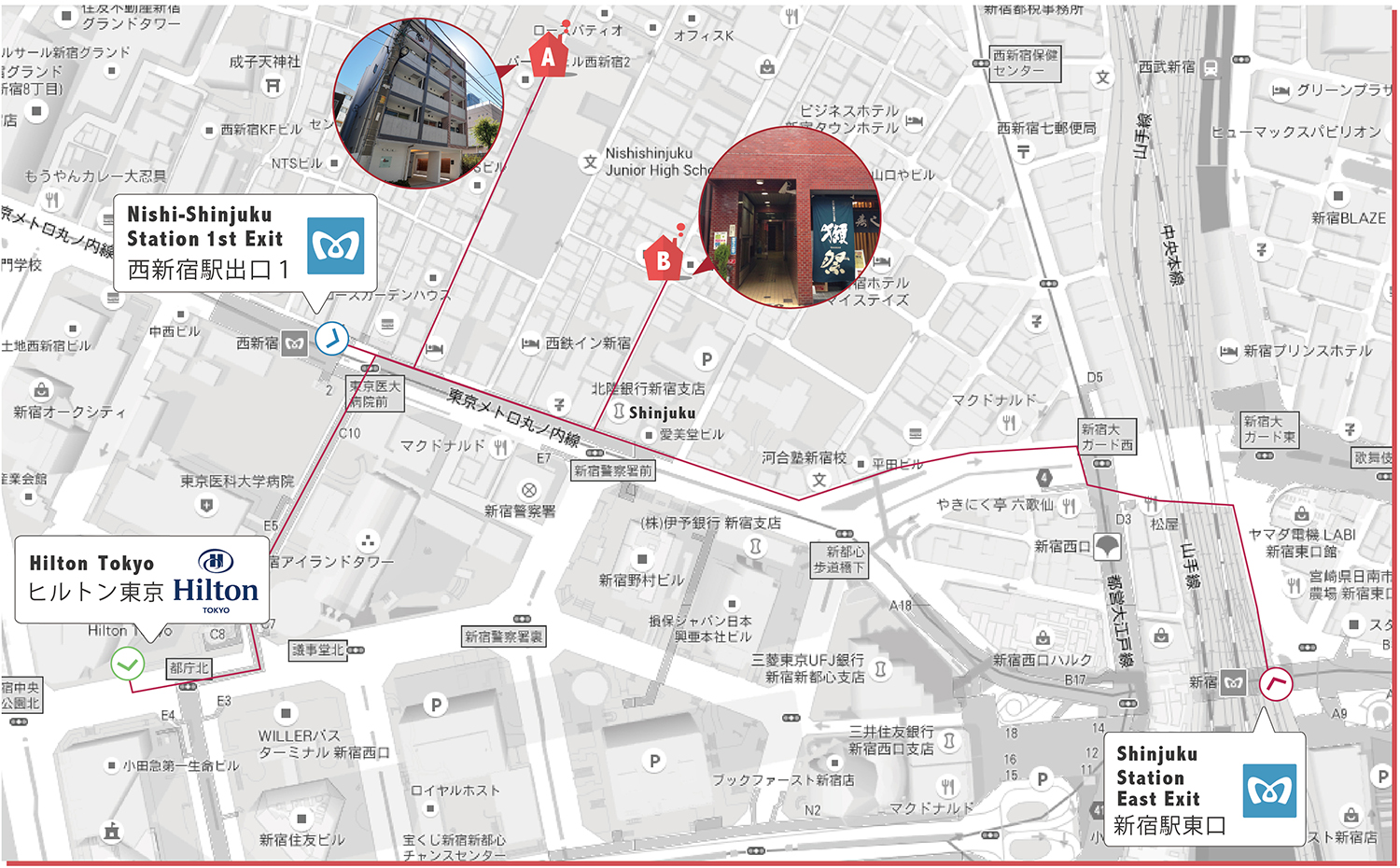 電車丸之內線:西新宿站,步行約3~5分鐘