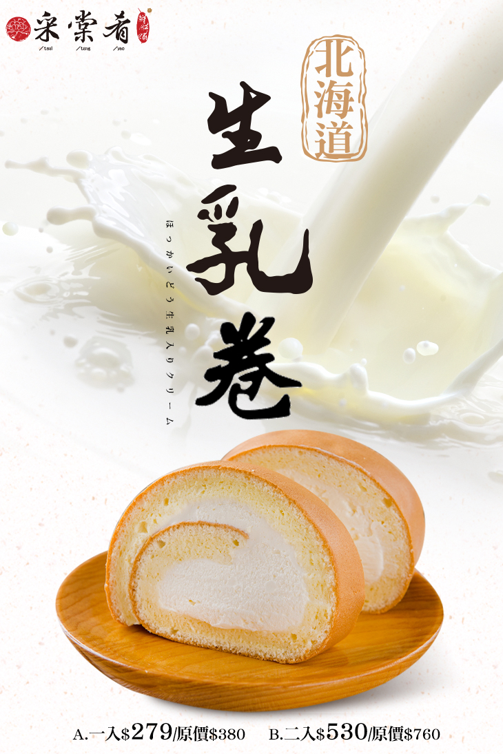 綿密細緻不膩口的北海道生乳卷,在沉悶的午後品嚐,搭上一杯甘醇的飲品,立刻變成貴婦下午茶!百分百的口感完美您的甜點時光!