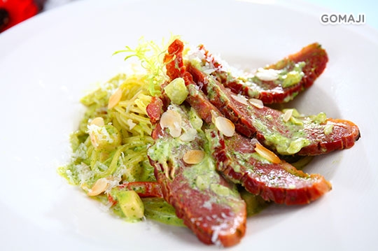 麵條煮得恰到好處又彈牙,醬汁豐沛飽滿,絕佳的濃郁口感讓您吃了就停不下來!上頭擺上片片肉質鮮嫩細緻、美味多汁的鴨胸,搭配麵條一口吃下,精華美味迸發迷人香氣,讓人的心都被這幸福滋味融化!