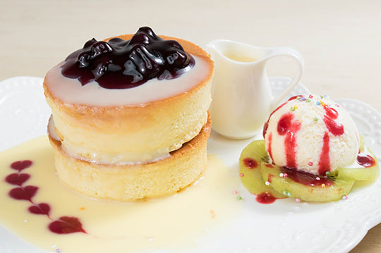 充滿美麗色澤的白可可莓果厚鬆餅,光看了就讓人食指大動!厚實內軟的鬆餅,搭配微酸微甜的醬料,可說是滿足您愛吃甜食的嘴!