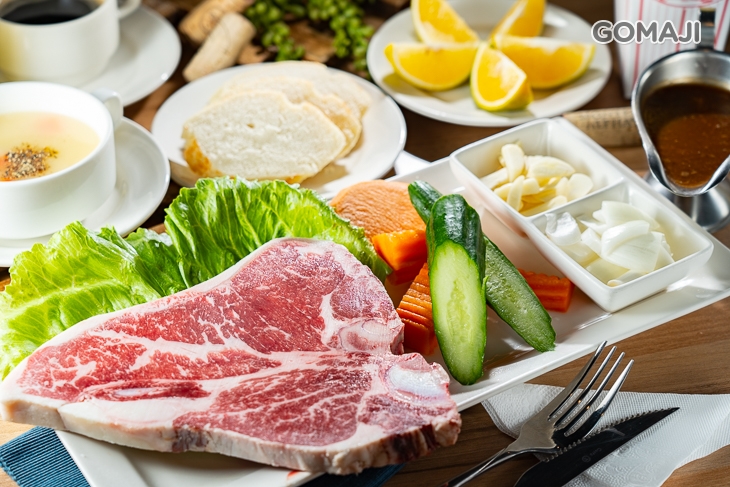 嚴選PR等級美國丁骨牛排,取自牛隻的前腰脊部位,將丁字骨區分兩種不同部位,一邊紐約客一邊菲力,一份牛排就囊括兩種美味~菲力牛排在口感上屬於精瘦鮮嫩,而紐約牛排則富有嚼勁及油花,丁骨牛排恰好同時滿足兩種需求,深受頂級饕客喜愛。