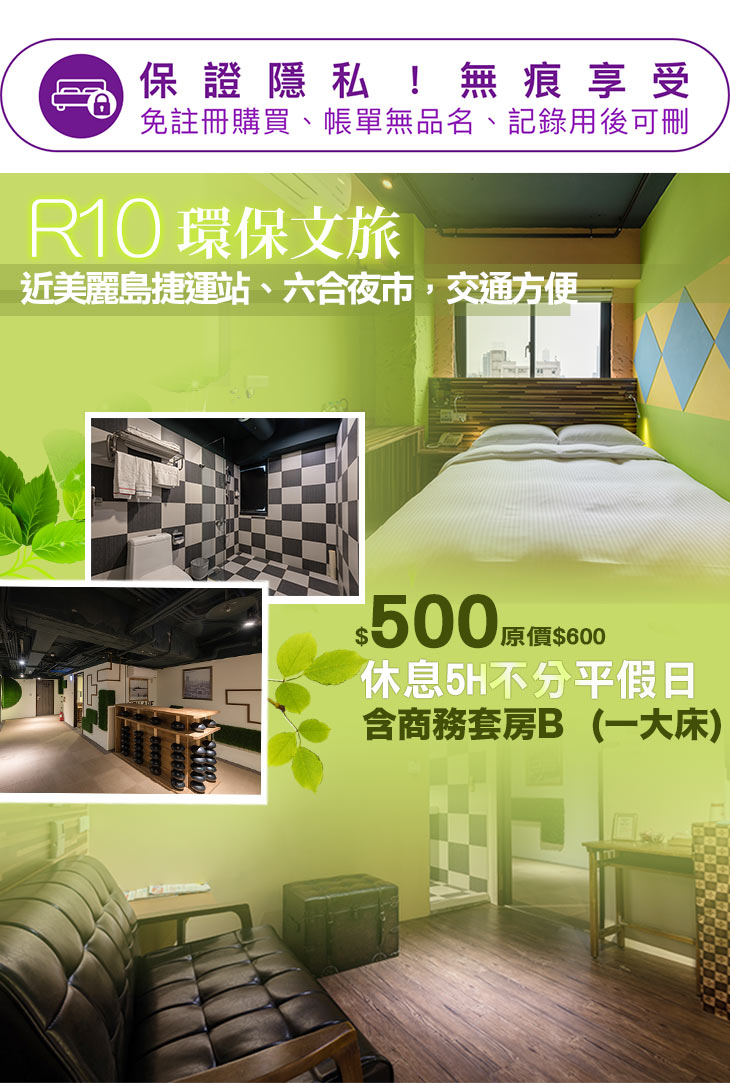 R10環保文旅擁有優越的地理位置,近享譽國際的六合夜市,夜市及附近景點更可以連結成一個旅遊圈,例如美麗島站的光之穹頂,城市光廊及高雄市立文化中心等!離R10美麗島站只需要約兩分鐘路程,不管前往任何地方都便利!飯店一樓對面還有正合興蜜餞行、老江紅茶店、羊肉爐等道地美味等您來品嚐!