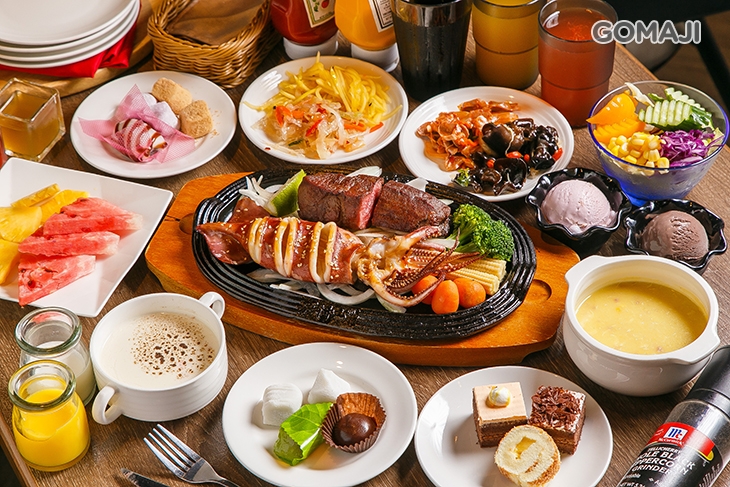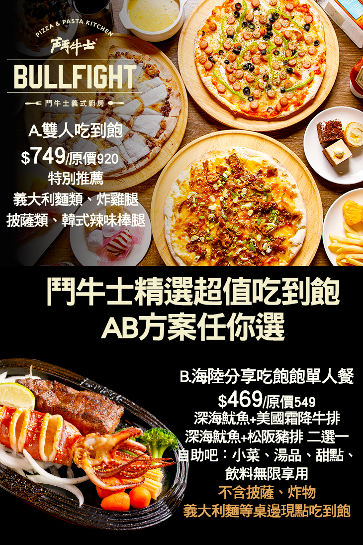 〈深海魷魚+美國霜降牛排/深海魷魚+松阪豬排 二選一 + 自助吧:小菜、湯品、甜點、飲料無限享用(不含披薩、炸物、義大利麵等桌邊現點吃到飽)〉