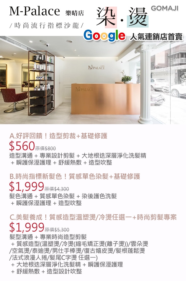 A.好評回饋!造型剪裁+基礎修護 / B.時尚指標新髮色!質感單色染髮+基礎修護 / C.美髮養成!質感造型溫塑燙/冷燙任選一+時尚剪髮專案