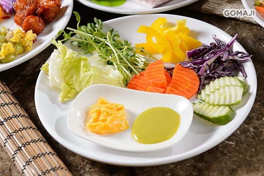 【三愛蔬軒】 採用新鮮健康食材,簡單調味並運用其特性搭配,香氣自然純粹透著原始的鮮香口感,讓味蕾也樂活一番! 全時段蔬食吃到飽 菜色內容每日不同,實際菜色依現場供應為主。 主廚以多年豐富經驗,將特選食材變化出多道迷人佳餚,成為蔬食者的天堂!選擇眾多,給你新鮮爽口的樂活美味,清爽無負擔! 眾多料理任君挑任選,道道都是主廚的精心之作,每道都品嚐,感受驚奇連連的享食盛宴!