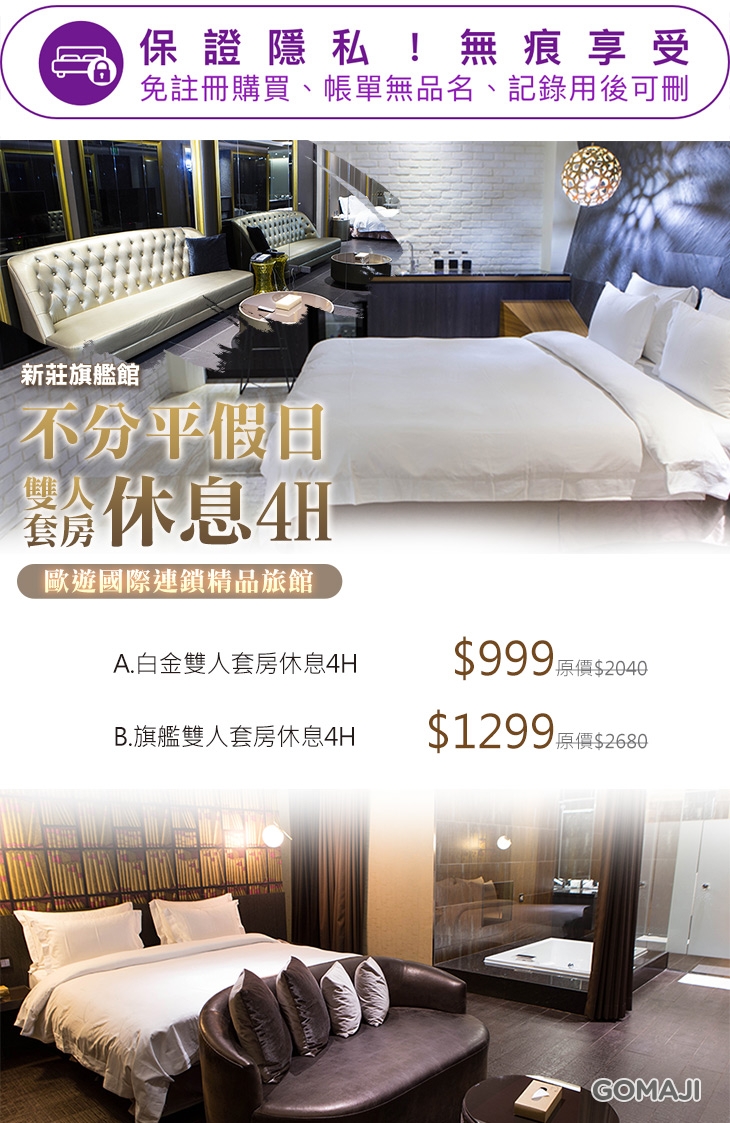 【新莊-歐遊國際連鎖精品旅館(旗艦館)】感謝麻吉們熱烈搶購,已全數賣光光。