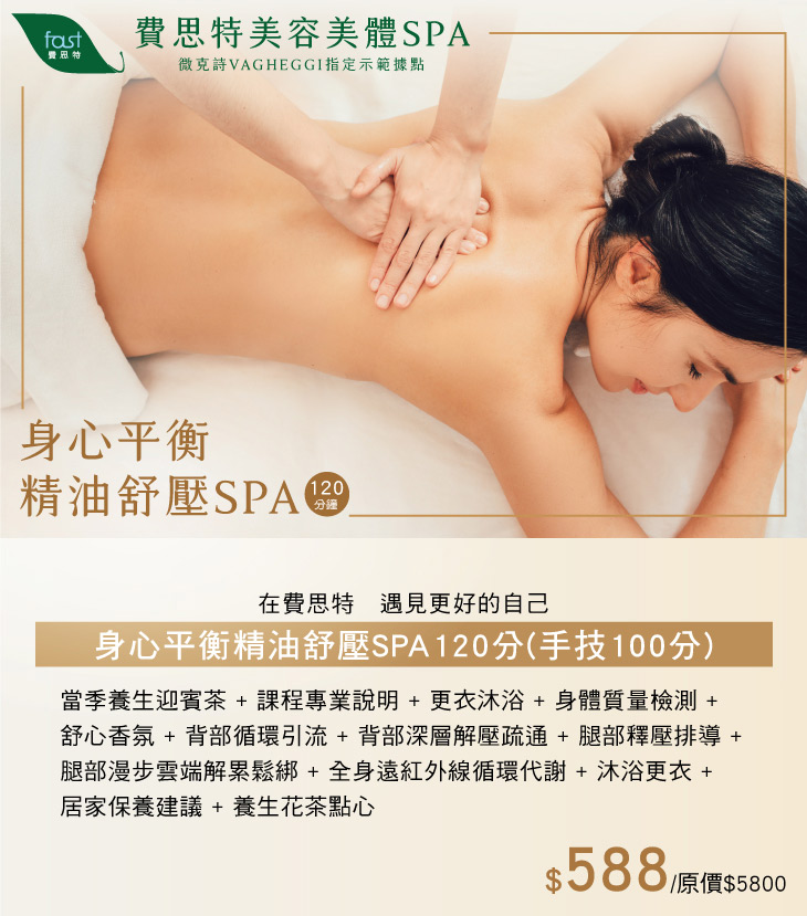 微克詩VAGHEGGI呵護您!身心平衡精油舒壓SPA120分(手技100分)