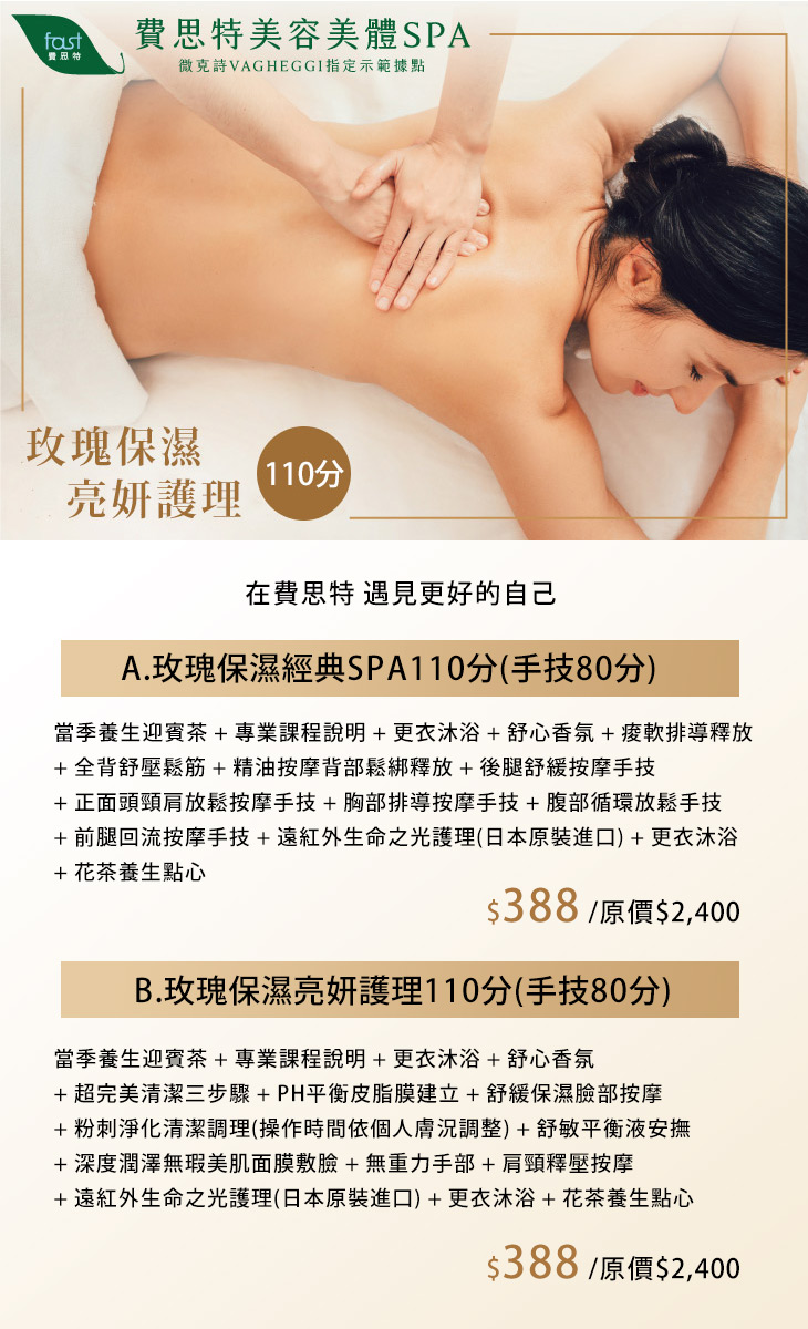 B.玫瑰保濕亮妍護理110分(手技80分)