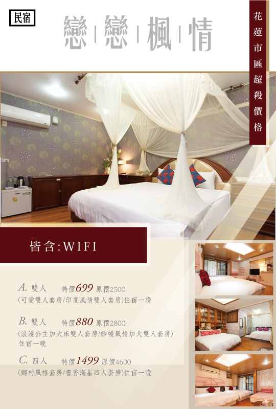 【花蓮-戀戀楓情民宿】感謝麻吉們熱烈搶購,已全數賣光光。