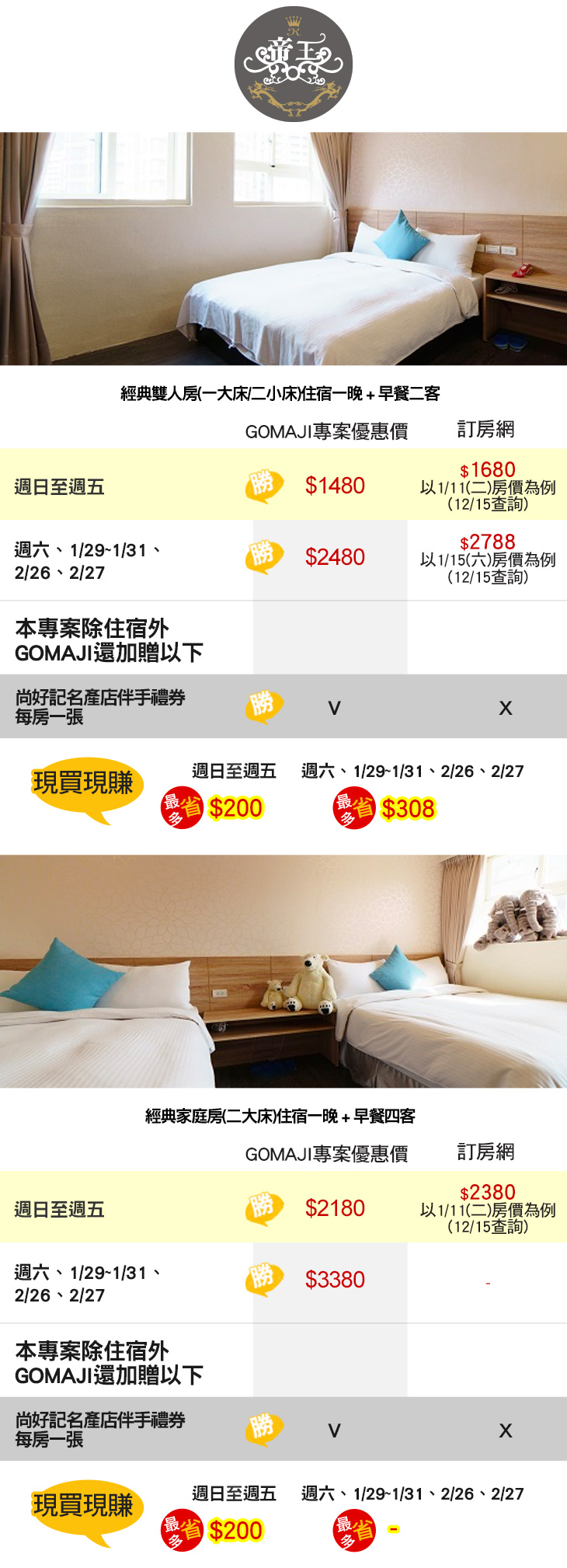 ※ 房型每間配置與設計格局不盡相同,依現場房況安排為主。