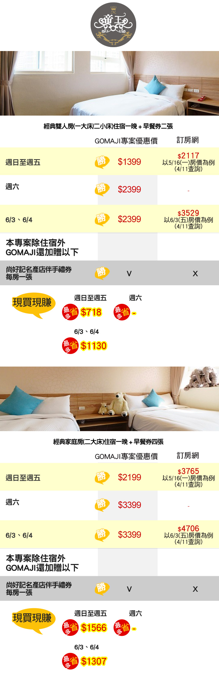 ★ 麻吉好康:尚好記名產店伴手禮券每房一張 !