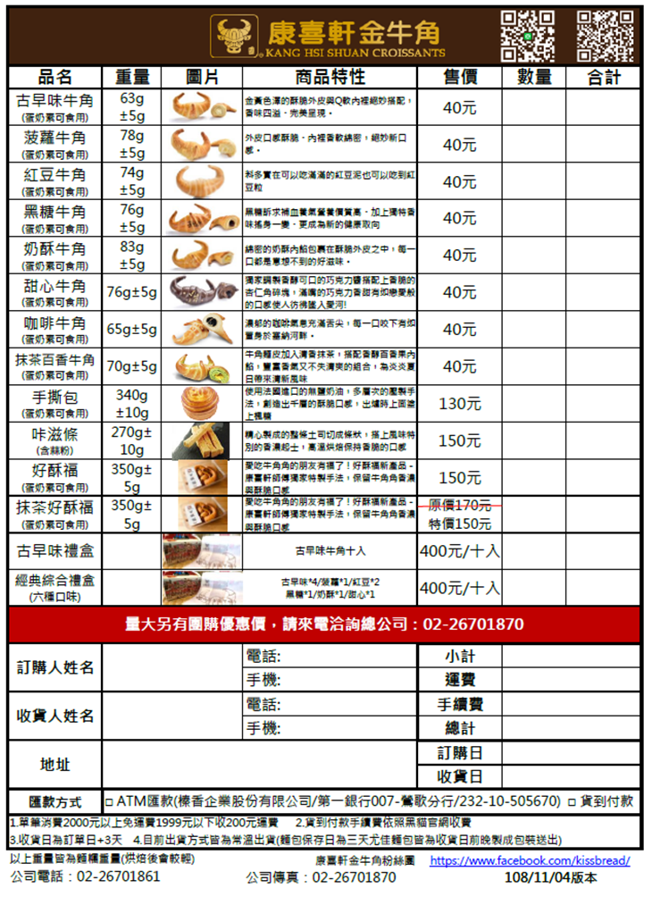 風靡大街小巷的人氣美食!這檔錯過,絕對讓您直呼可惜喲!在台擁有眾多分店的【康喜軒金牛角】,希望顧客從「認識金牛角」、「相信金牛角」到「愛上金牛角」,因此不斷改良產品品質,強調健康與衛生。 正統康喜軒金牛角與三峽角胖パン老街創始店無關 ~ 抱持著「用心」、「愛心」、「專心」、「良心」這四心生產店內每項產品,不惜成本堅決使用法國進口發酵奶油、加拿大小麥以及100%乳品製作口味獨特的金牛角牛角麵包。康喜軒將在地的三峽老街文化融入到包裝禮盒中,讓每個來到三峽老街的遊客品嚐到口感獨特的金牛角之外也能進而了解三峽老街的文化與故事。