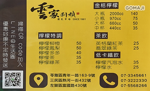從一杯1塊錢到現在一杯50元(大杯),陪伴許多高雄人一同成長的雲家金桔檸檬大王跟您一起驕傲地走過半世紀、共同創造台灣的經濟奇蹟。