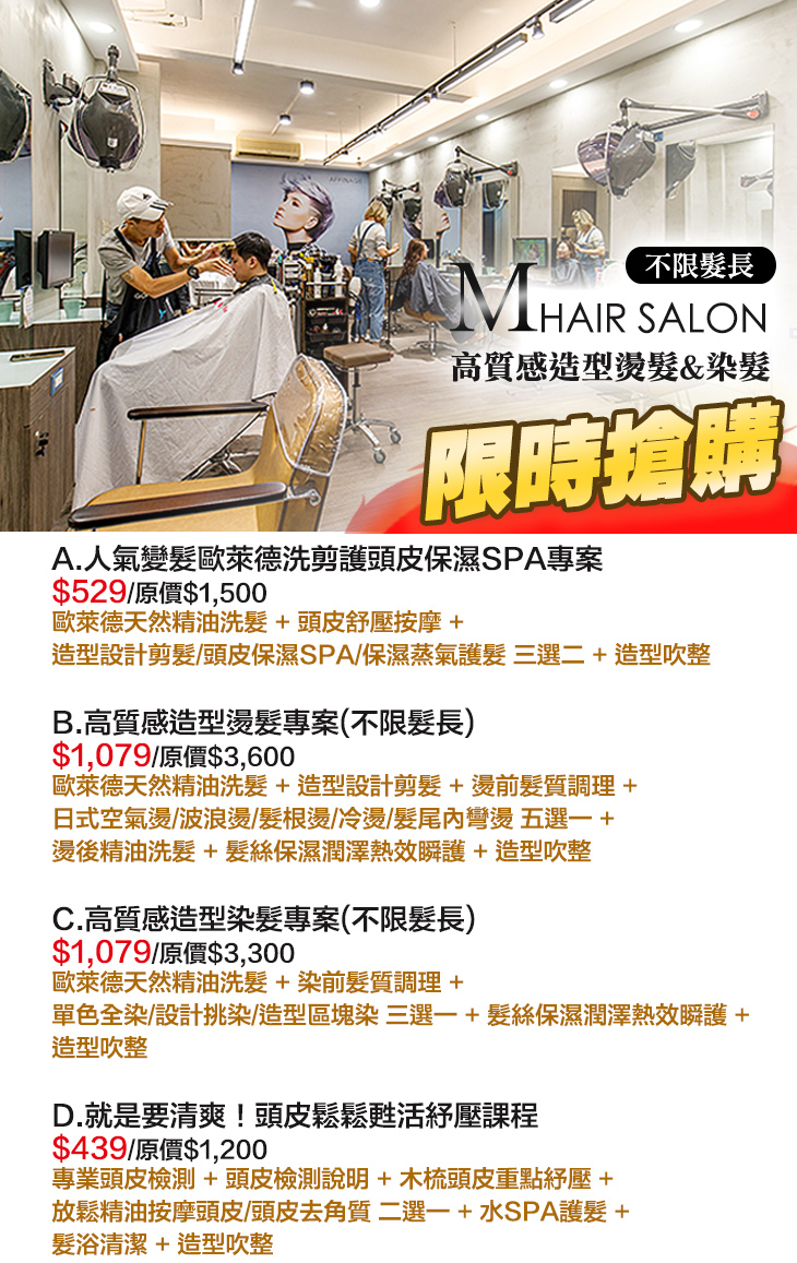 C.高質感造型染髮專案(不限髮長)