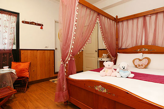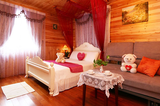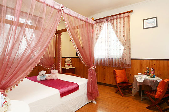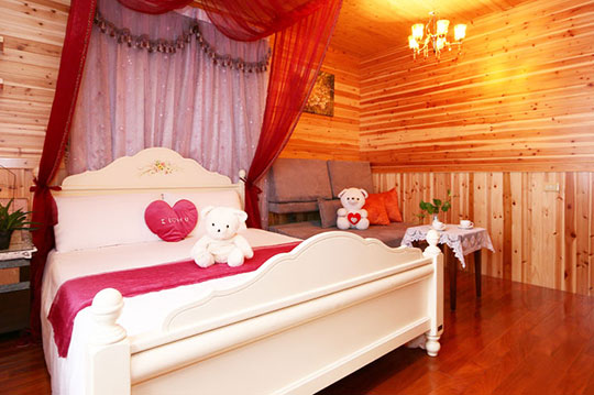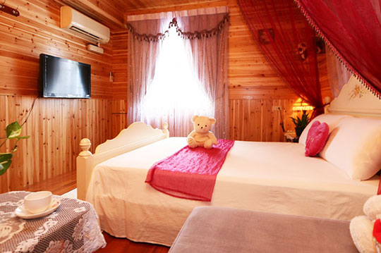 提供多種主題式的浪漫套房,寬闊、潔淨的套房空間中,有著精緻的特色裝潢和浪漫佈景。使用大量的木質傢俱,呈現鄉村風的自然與舒適,自然的溫度帶上淡淡的甜美與華麗,不管是情侶、好友或闔家出遊,都能享受悠閒愉悅的假期時光!