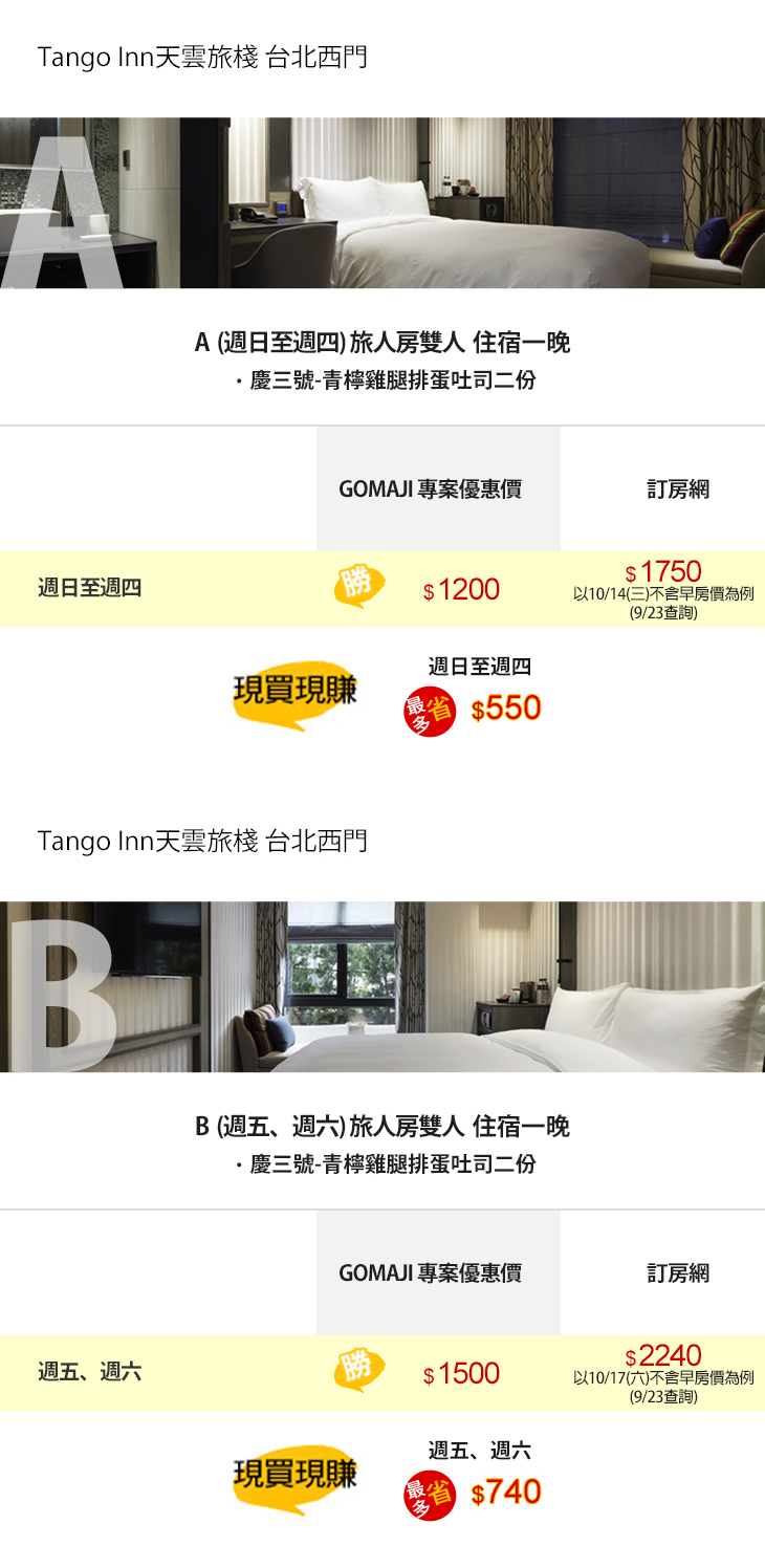 【Tango Inn天雲旅棧 台北西門】感謝麻吉們熱烈搶購,已全數賣光光。