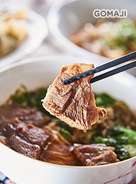 半筋半肉的牛肉塊,鮮嫩中不僅帶有嚼勁,更含有溫潤爽口湯汁,加上香蔥、青菜等配料,一碗豐富的麵,給你超滿足享受!